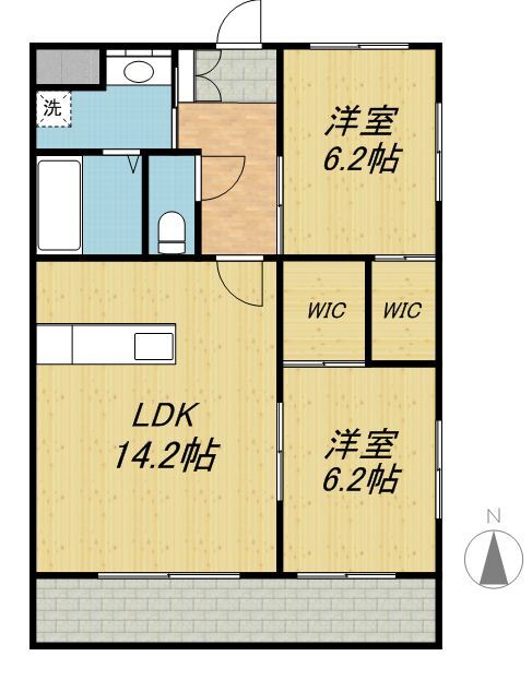 間取り | 2LDK | 専有面積 | 62.04㎡ |